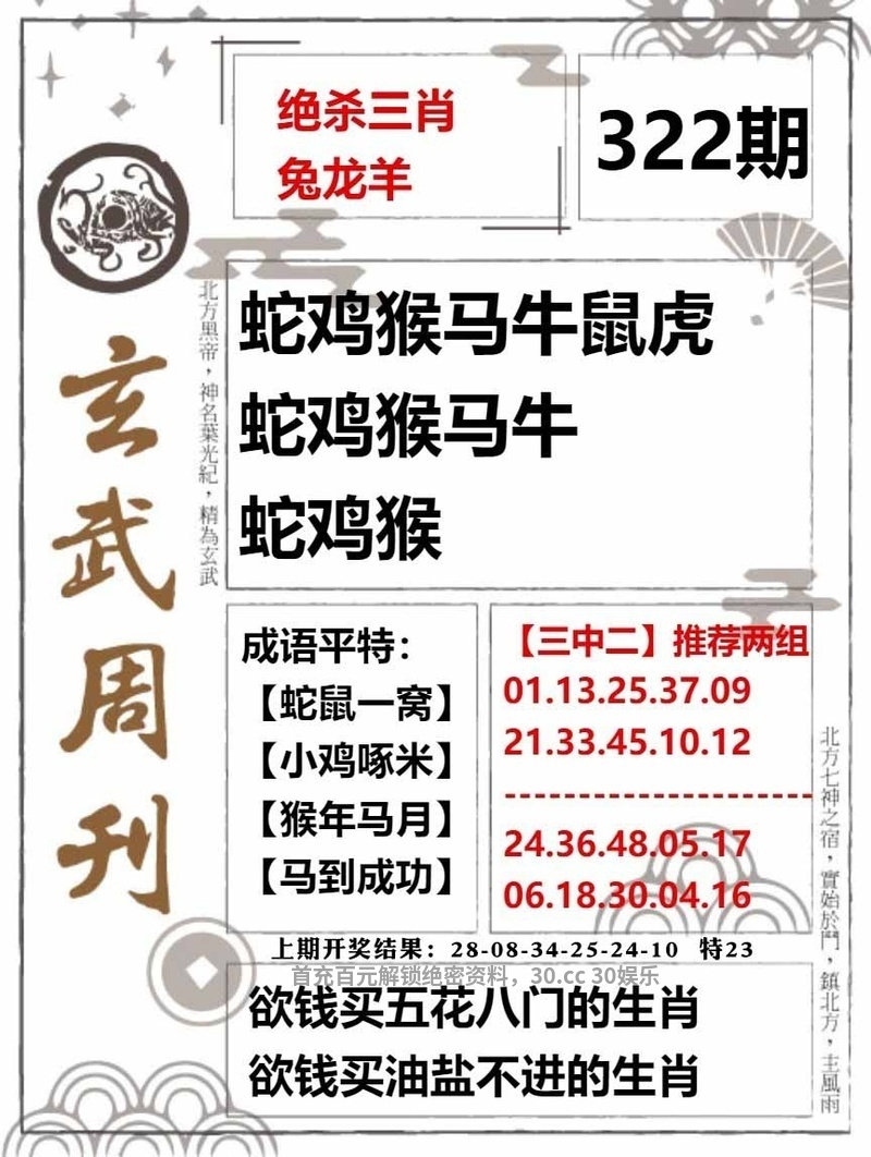 - 327期:澳门王者论坛④肖④码期期中奖✔